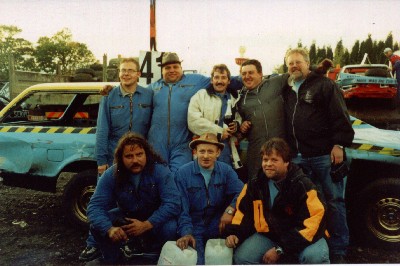 Mike ( Zweiter , hinten rechts ) und seine Helfer mit dem